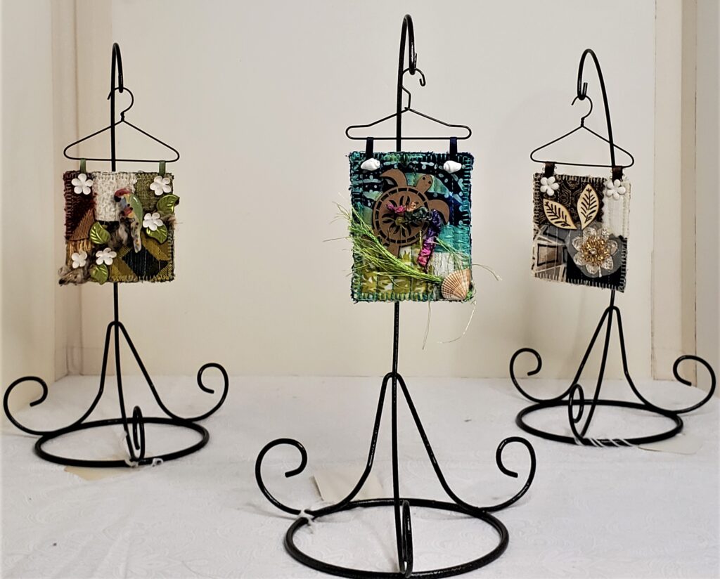 Follow my journey into whimsy. Get ready for a fun-filled trip. Take a look at how you can make your fabric panels and UFO’s shine! Different trims and embellishments can become other objects depending on how they’re used. Anything goes!